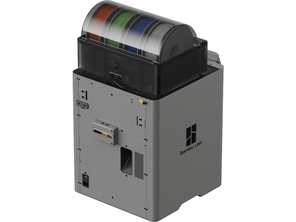 Zvlášť chytré je integrované sušení filamentu: až čtyři cívky se suší současně, zatímco elektromagnetický vzduchový ventil automaticky odvádí vlhkost. Cívky se přitom pravidelně otáčejí pro rovnoměrné sušení a konzistentní kvalitu tisku.