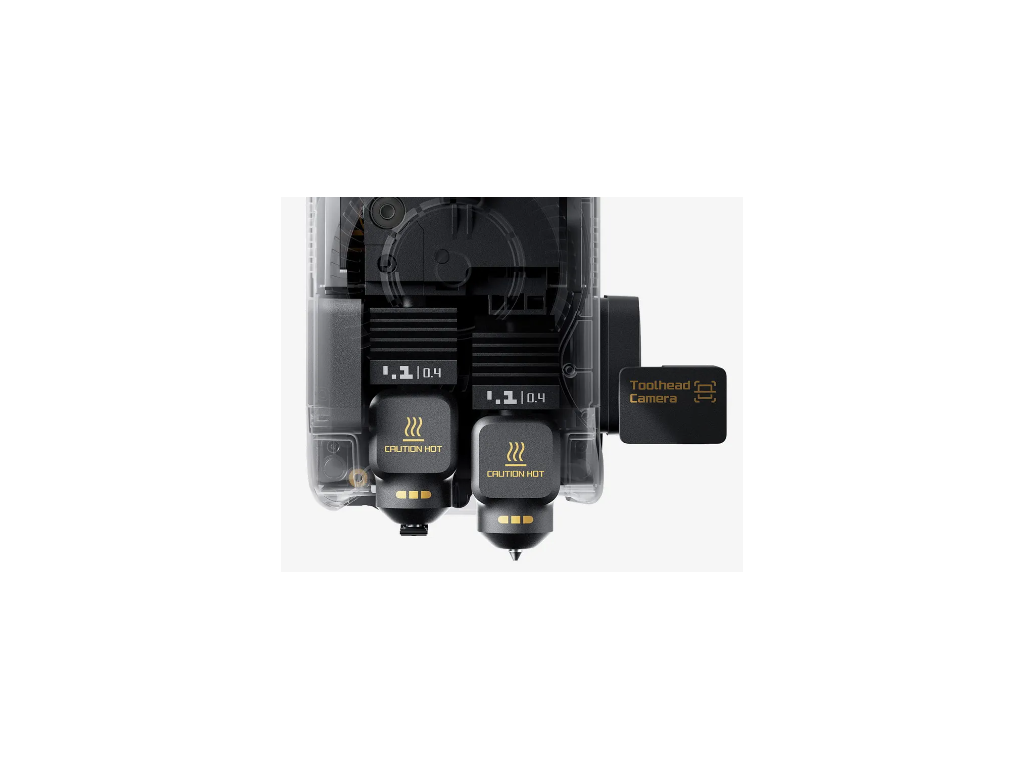 Proprietární dynamická kalibrace průtoku v reálném čase kompenzuje opotřebení trysky, navlhčení filamentu i změny teploty. PMSM servo motor extruderu vzorkuje odpor a pozici 20 000× za sekundu. Vibration Compensation a VFA algoritmus zajistí ostré detaily bez ghostingu. 28 senzorů + AI kamera detekují debris na podložce, spaghetti a zaseknutí v reálném čase.