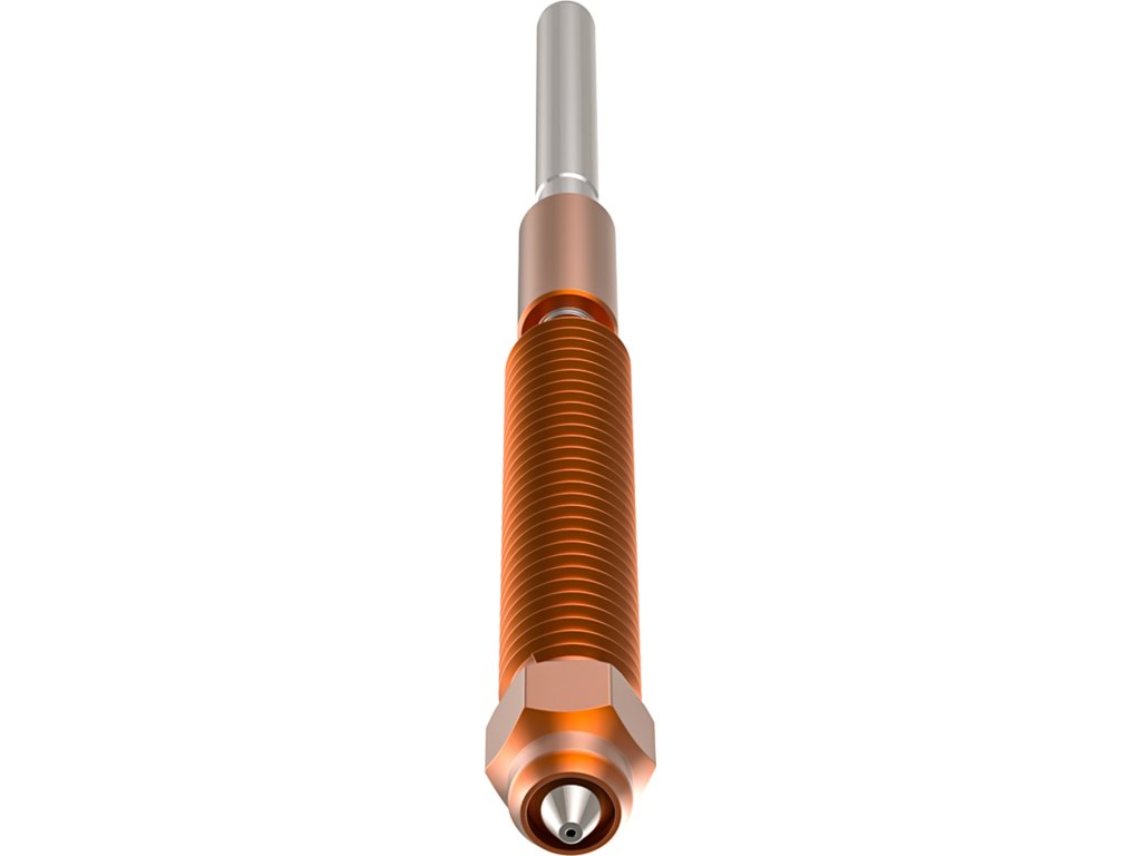 Měděná tryska Unicorn pro 3D tiskárny Creality K2 Plus/Creality Hi, 0,4 mm. Při výměně trysky je potřeba nejdříve stávající trysku nahřát na vyšší teplotu a trysku povolit.